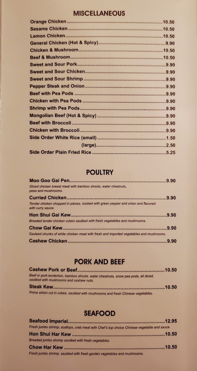 The menu at New China Restaurant offers a straightforward and approachable selection of classic Chinese dishes, perfect for those seeking comforting, home-style flavors. This is the kind of place where you can enjoy satisfying meals whether grabbing a quick takeout lunch or a relaxed dinner at home.